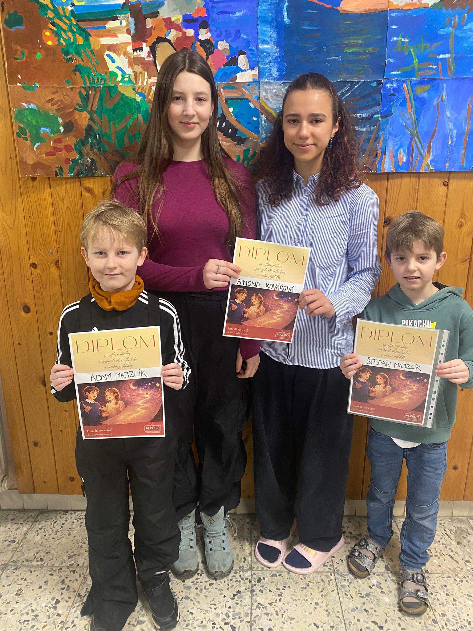 Tito výborní recitátoři nás budou reprezentovat v okresní přehlídce recitátorů, která se bude konat 19. března 2026 v Rožnově pod Radhoštěm. Všem recitátorům přejeme hodně úspěchů.
